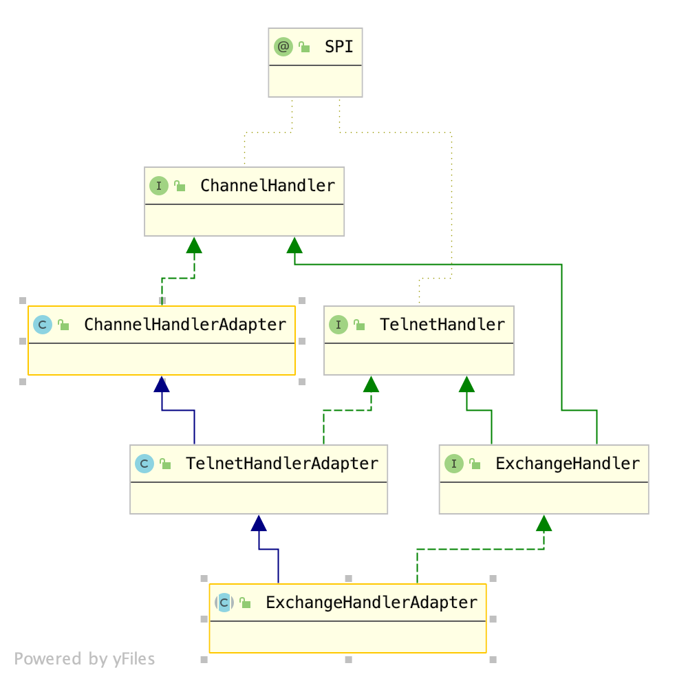 其余的类,除了TelnetHandlerAdapter,提供的都是一些空方法,而TelnetHandlerAdapter提供了处理telnet访问Dubbo的处理逻辑。